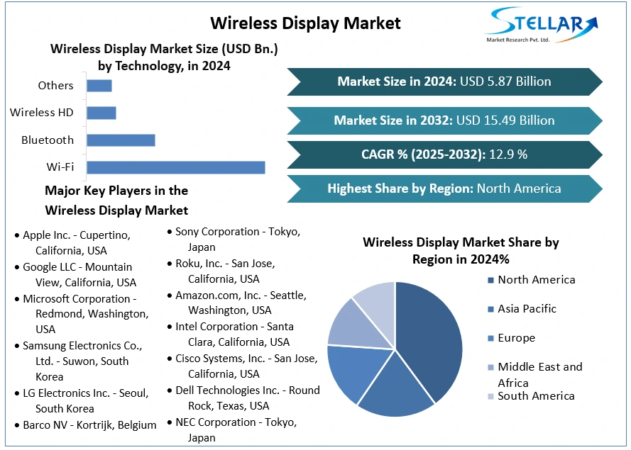 The global wireless display market, encompassing technology that wirelessly streams content from devices like laptops and smartphones to larger screens such as TVs or projectors, is poised for explosive growth. Valued at USD 5.87 Billion in 2024, the market is projected to expand at a remarkable Compound Annual Growth Rate (CAGR) of 12.9%, reaching nearly USD 15.49 Billion by 2032. This technology, largely operating over standard Wi-Fi networks, has evolved from a niche feature into a mainstream solution, transforming how we consume entertainment, collaborate in workplaces, and engage in educational settings.